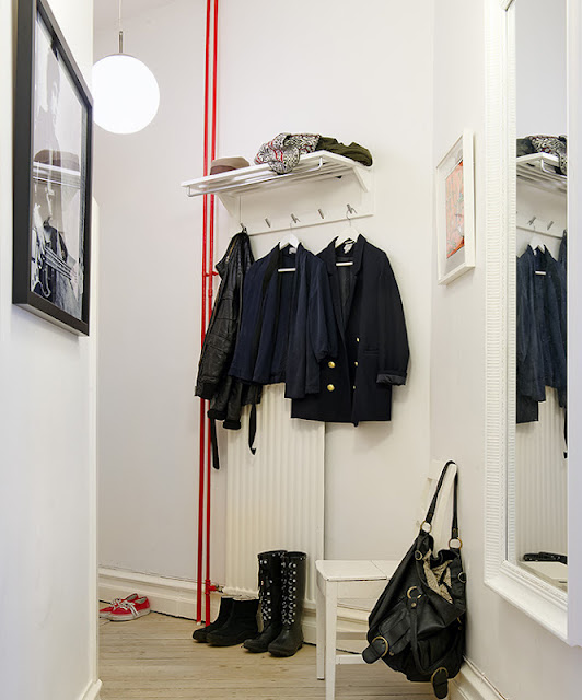 JAG gillar lite bus i inredningen...se bara hur roligt det kan bli när man målar 2 rör RÖDA som annars bara är 2 tråkiga, gamla vita rör som går från golv till tak.